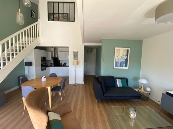 Bien exposé et inondé de lumière, ce duplex dans le nouveau quartier en devenir du Pont Simone Veil offrait un très beau potentiel en volumes. Rénové avec des matériaux de qualité et des couleurs douces, cet appartement a révélé son charme et son caractère.